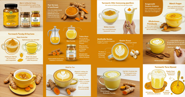 - 강황 라떼(골든 밀크)는 우유 지방과 함께 섭취할 수 있어 효과적입니다.