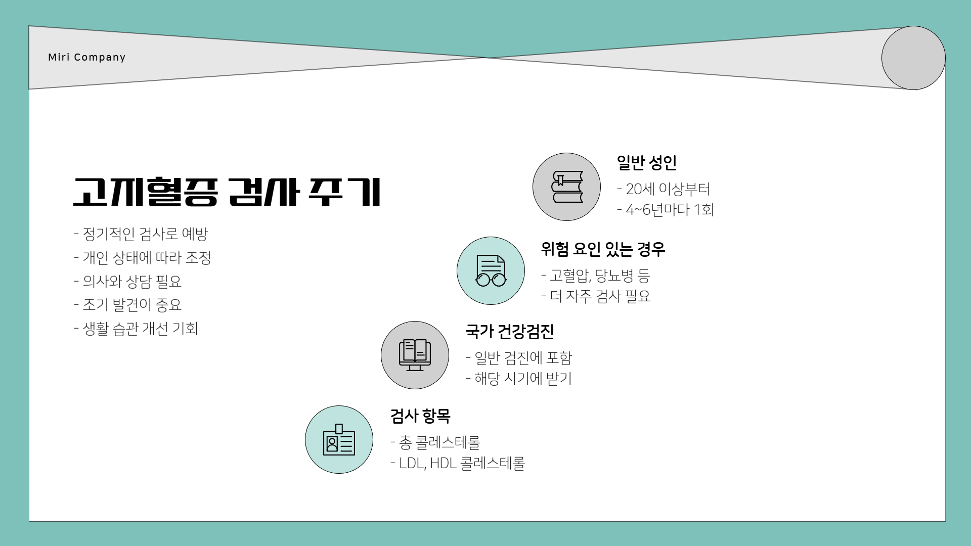 - 검사 주기: 일반적으로 성인의 경우 특별한 위험 요인이 없다면 20세 이상부터 4~6년에 한 번씩 검사받는 것이 권장됩니다. 하지만 고혈압, 당뇨병, 비만, 흡연, 심뇌혈관 질환 가족력 등 위험 요인이 있다면 더 자주 검사를 받아야 할 수 있습니다. 국가 건강검진 항목에도 포함되어 있으니 해당 시기에 맞춰 받는 것이 좋습니다.