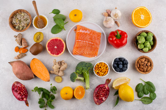 비타민 C | 감귤류, 딸기, 키위, 브로콜리, 피망 | 강력한 항산화제로 면역 체계를 강화하고 바이러스와 싸우는 데 기여합니다. 피부 재생에도 도움을 줍니다. |