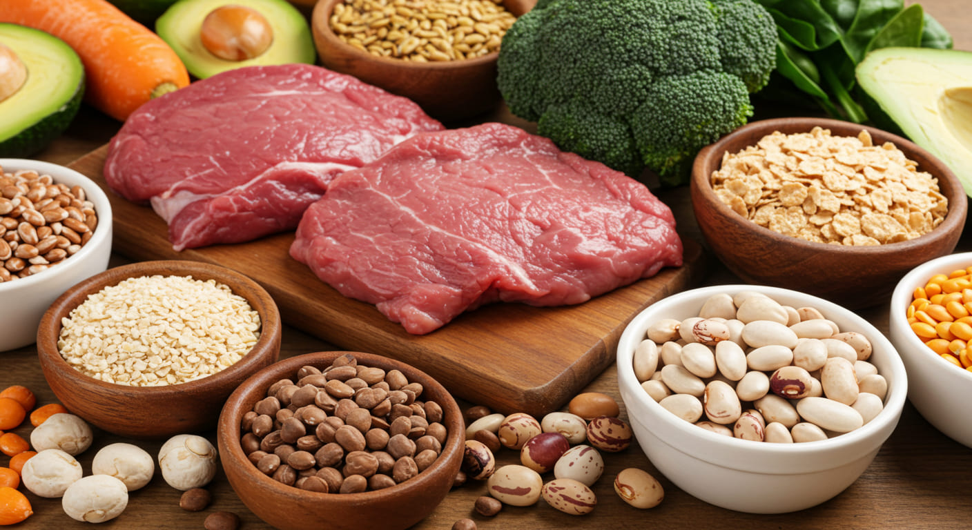철분에는 두 가지 종류가 있어요.- 헴철 (Heme iron): 주로 붉은 살코기, 간, 생선, 조개류 등 동물성 식품에 들어있습니다. 우리 몸에 흡수되는 비율이 약 15~35%로 비교적 높은 편입니다.