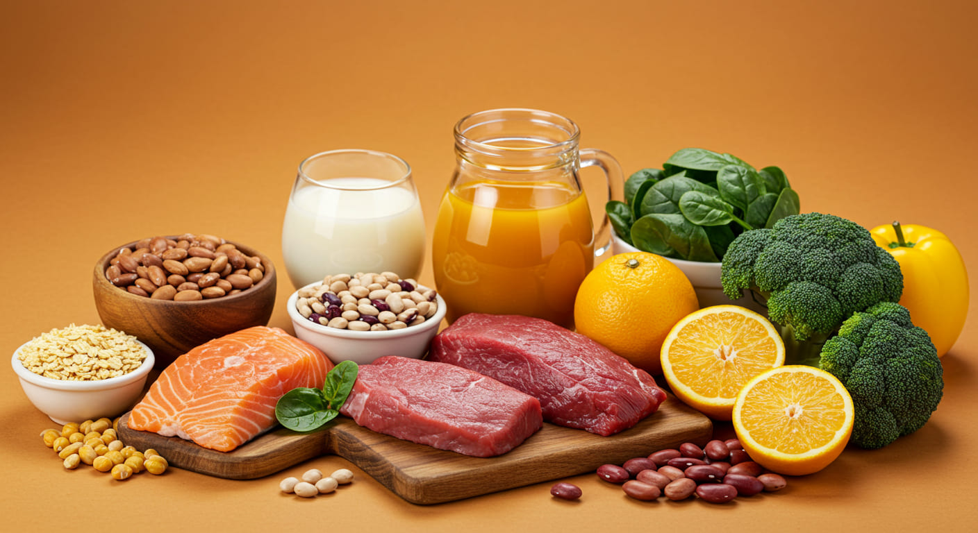 철분만큼 중요하진 않지만, 비타민 B12와 엽산 역시 건강한 적혈구를 만드는 데 필수적인 영양소입니다. 이 영양소들이 부족해도 적혈구가 비정상적으로 커지는 '거대적아구성 빈혈'이 생길 수 있습니다. 비타민 B12는 주로 동물성 식품(육류, 생선, 달걀, 유제품)에, 엽산은 녹색 잎채소, 콩류, 강화 시리얼 등에 풍부합니다. 균형 잡힌 식단을 통해 이 영양소들도 부족하지 않게 섭취하는 것이 중요합니다.