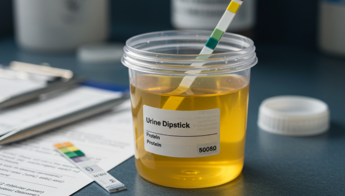 기본적인 소변검사를 통해 단백뇨, 혈뇨, 염증 수치 등을 확인하고, 필요에 따라 혈액검사로 신장 기능(크레아티닌, 사구체여과율 등)이나 혈당 수치를 파악합니다.