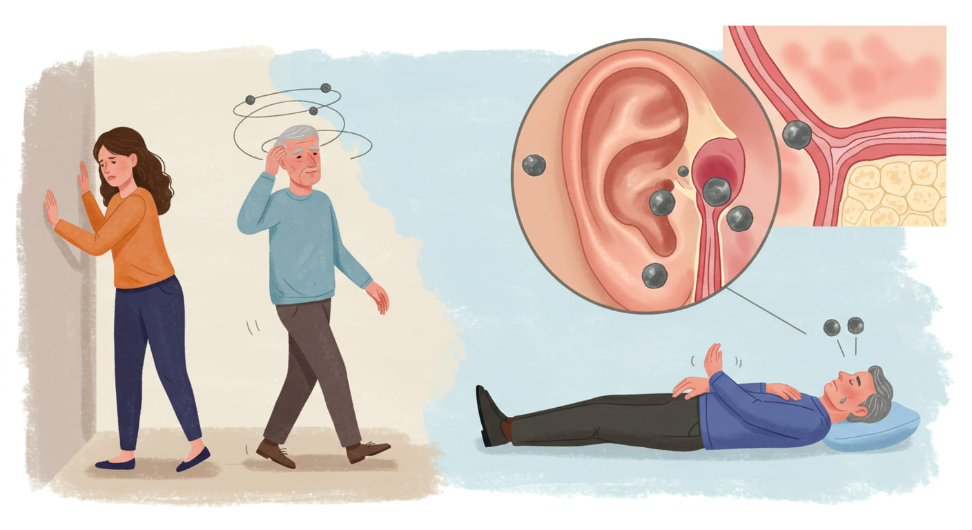- 이석증: 가장 흔한 어지럼증 원인 중 하나입니다. 귓속 평형기관 안에 있어야 할 작은 돌(이석) 조각이 떨어져 나와 반고리관으로 흘러 들어가 발생하는 문제입니다. 머리를 특정 방향으로 움직일 때(누울 때, 일어날 때, 고개를 돌릴 때 등) 짧지만 매우 강렬하게 빙빙 도는 느낌을 받습니다. 다행히 비교적 간단한 물리치료(이석정복술)로 치료 효과가 좋은 편입니다.
